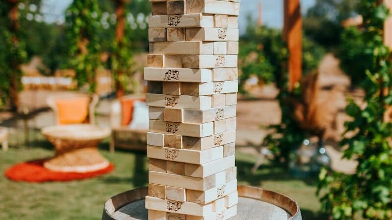 It's Jenga, but each block pulled adds more than just suspense—it adds conversation and hilarity. Get to know the couple and other guests as you try not to let the tower tumble.