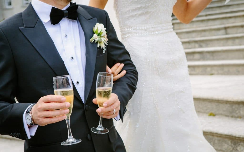 Get some faux bling and set up bottles. Label them with relationship milestones like "First Kiss," "Moved In," or "Met the Parents."