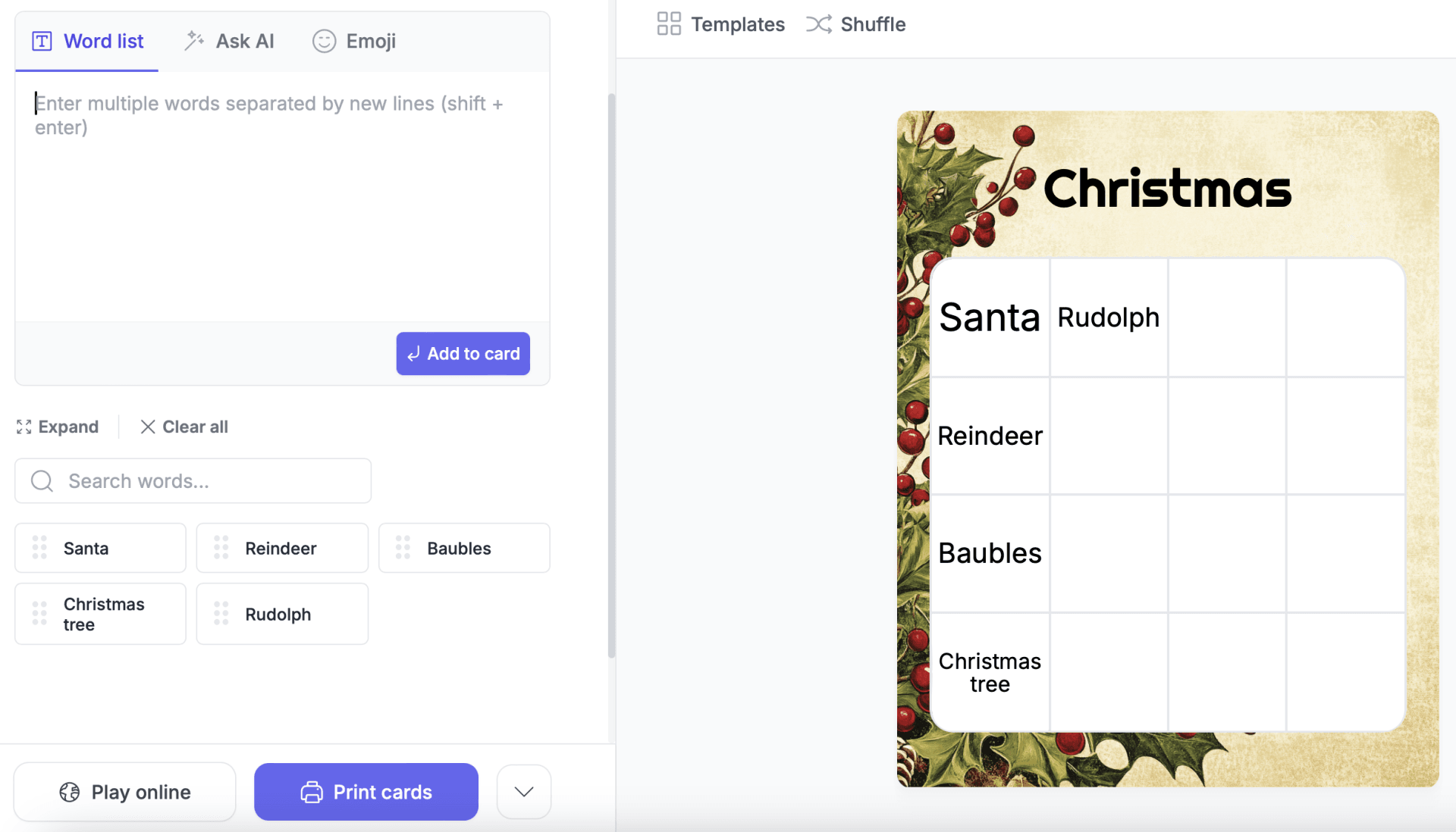 Designing your own bingo cards can be as simple or as intricate as you want. With a few quick steps, you’ll have Christmas bingo cards ready to go.